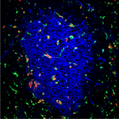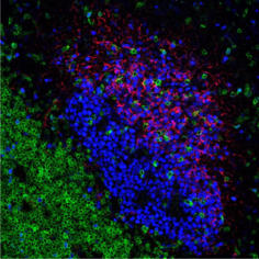 The database includes image series derived from three different triple immunofluorescence stainings. After choosing a staining by clicking on the images below you will be directed to an overview of the image series from where you can select image stacks by tissue ID and time after immunization.